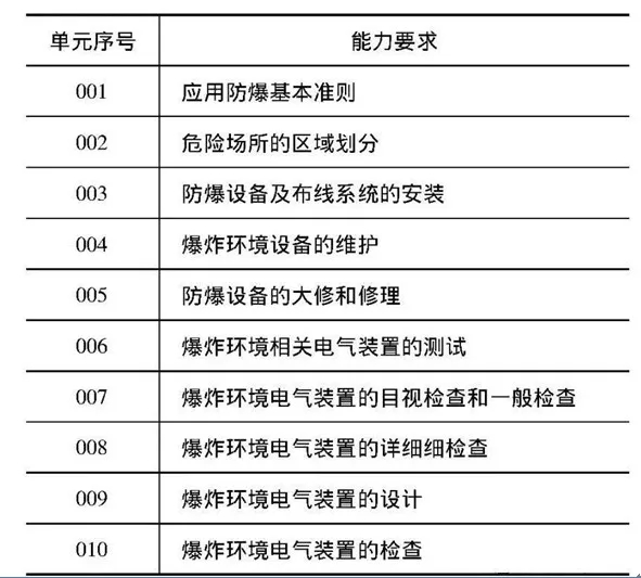 IECEx05人員能力認證為從事爆炸性環境用防爆設備和相關工作人員的常識和技能是否達到IECEx要求、是否把握危險場所安全的作業程序、是否可以正確安裝、檢查、維護和修補防爆設備和系統供應了證明。IECEx人員能力判定依據IECExOD501、IECExOD502、IECExOD503、IECExOD504操作文件進行,具體能力單元見表1,每個單元對人員的經歷、常識、技能都做了明確要求,懇求者需求具有一定的技能經歷和訓練履歷后才可懇求進行判定,001單元為基礎單元,必須在001的基礎上單元能力懇求其他單元的判定。