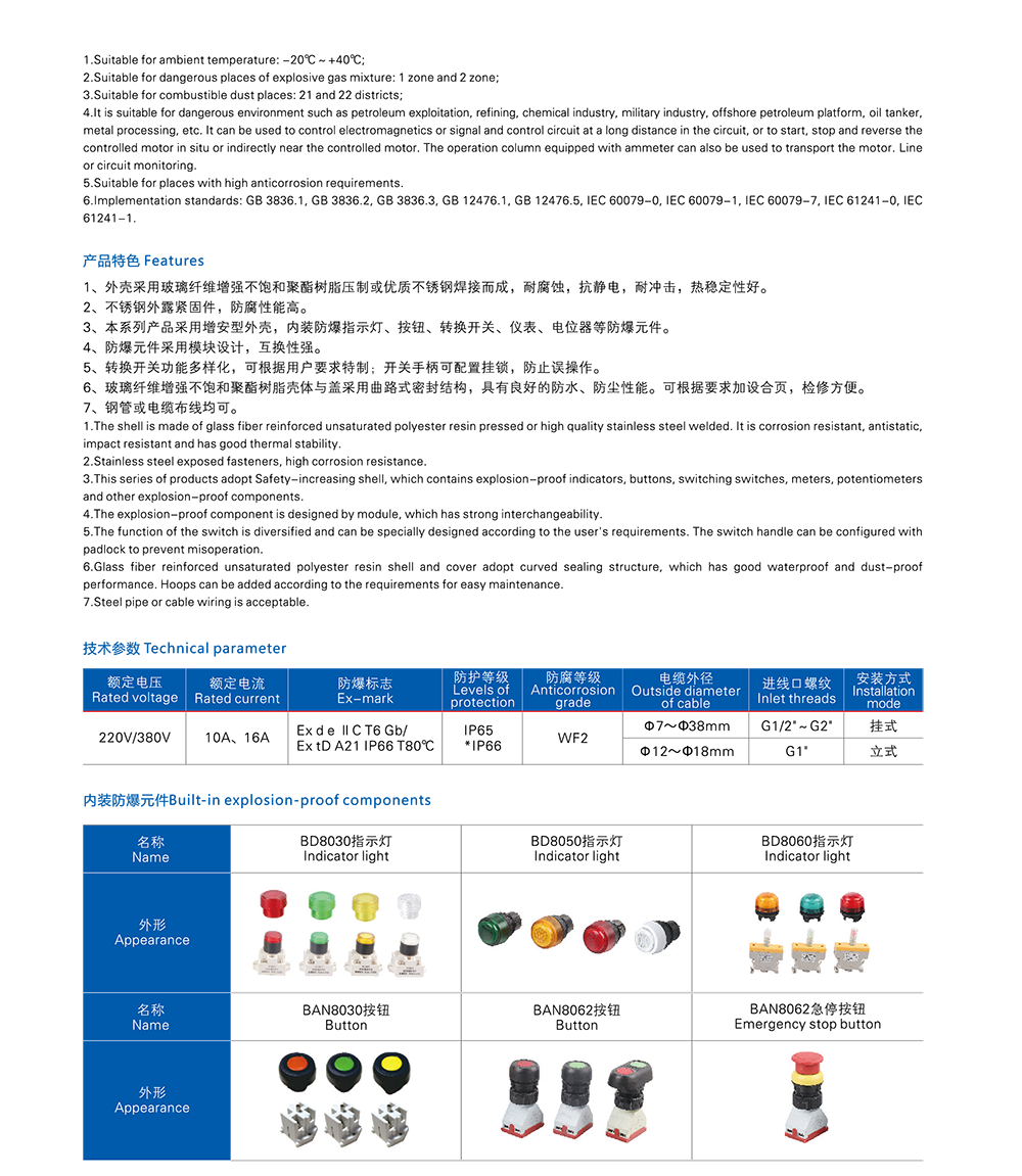 BXK8050系列防爆防腐控制箱(IIB、IC、DIP)